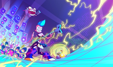 "Battle of the Bands" is an action-comedy animated series for kids aged 10-12. With 22' episodes, it merges the excitement of rock music with adventure, exploring coming of age themes of rebellion and self expression. Set in Boom Town, where free music is banned by the authoritarian company MAD (Music Assembly & Distribution), the story follows Roary, a 13-year-old girl determined to become a rock star who discovers The Deafeater, a legendary guitar linked to a catastrophic event that led to the ban on free music. With her new band, Roary aspires to win the Battle of the Bands, an underground music competition that defies MAD’s prohibition, to become the greatest of all the genuine musicians that keep playing in Boom Town. "Battle of the Bands" celebrates the power of music as a transformative force, especially in the face of oppression. It is a show that sparks creativity and celebrates diversity but also an epic series full of thrilling battles, awesome tunes and cool characters.