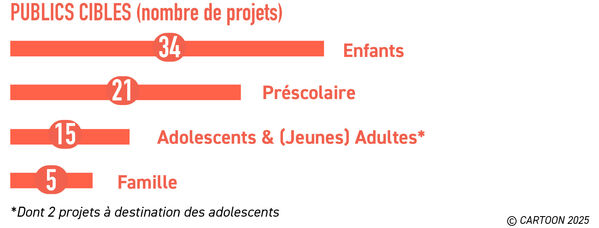 L’augmentation notable des projets préscolaires a également influencé la sélection finale, impactant l’équilibre global entre les différentes cibles. Le Comité a tenu à saluer la créativité et l’engagement de l’ensemble des candidats, et se réjouit de contribuer à la vitalité continue du secteur créatif européen.